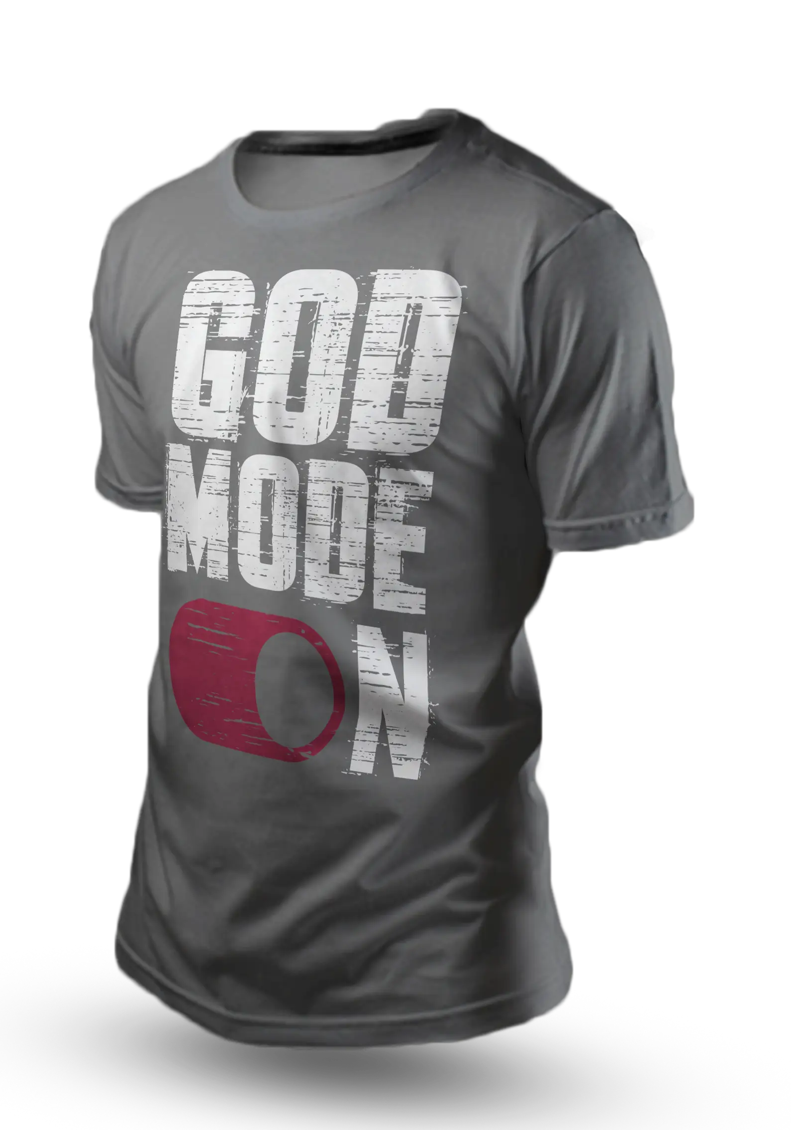 Mais do que uma camiseta, "God Mode On" é uma afirmação de fé. É sobre viver com confiança, sabendo que você caminha com Deus no controle. Ela traduz uma mensagem poderosa de forma estilosa e prática, perfeita para qualquer ocasião.