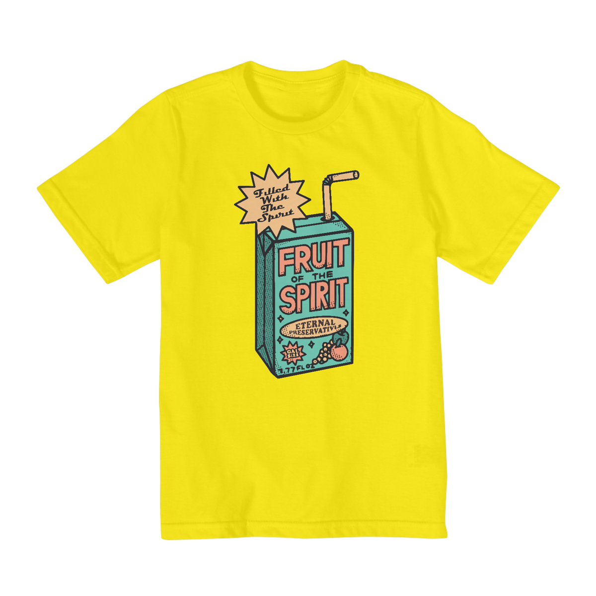 Deliciosa como o suco da vida! Inspirada em uma caixinha de suco, essa camiseta infantil traz o tema "Fruit of the Spirit" de forma criativa e cheia de cor. É um lembrete divertido e profundo sobre as qualidades que transformam o mundo: amor, alegria, paz, paciência, bondade, fidelidade, mansidão e domínio próprio.
